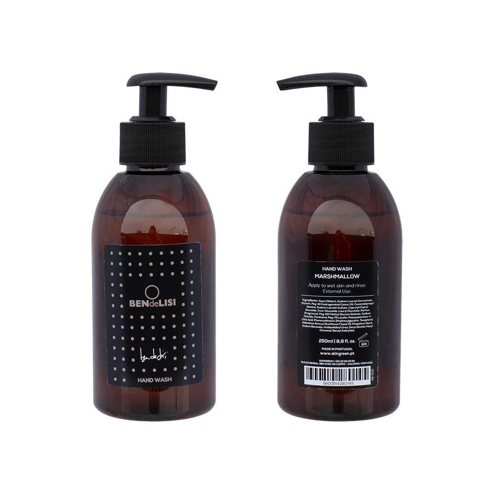 Sabão líquido de mãos perfumado, apresentado em embalagem com doseador. Feito em Portugal.