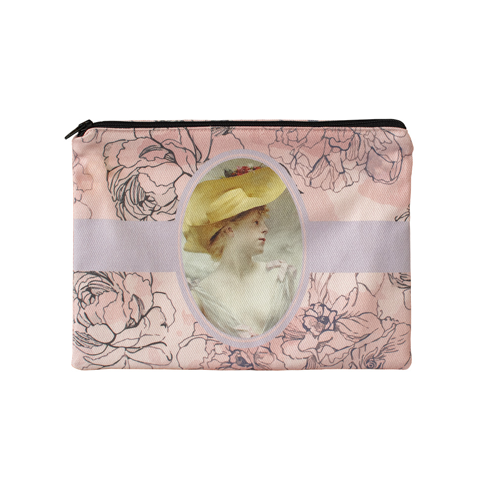 Bolsa retangular em algodão, na cor rosa, inspirado em retratos femininos do Museu de Belas Artes. Inspiração: “Jeune fille au chapeau de paille”. Feito em Portugal.